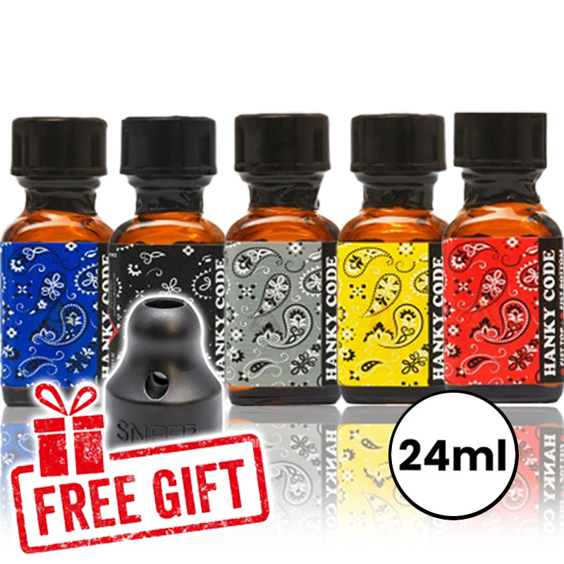 Bestel 3x Hanky Code Black 24ml Poppers met Gratis Hanky én profiteer van een rabat w wysokości 10% na butelkę.